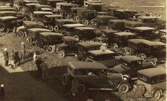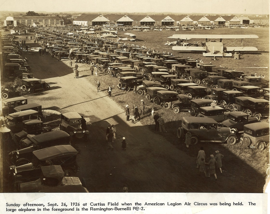 I think this might be opening day at Curtiss Flying Field on May 15, 1921. The plane could be a Curtiss JN-4. As for the cars, I’m sure there are a few Ford Model T’s.