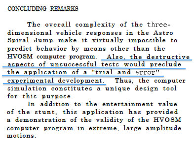 The British television show Top Gear failed twice to complete an accident-free relication of the Astro Sprial Jump..