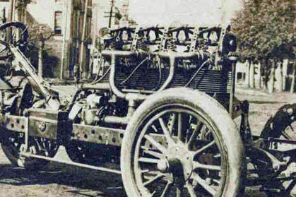 Premier built this special race car to compete in the 1905 American Elimination Trial and Vanderbilt Cup Race. The four-cylinder car had a huge 923.4 cubic inch engine; the largest air-cooled motor in existence and some speculated that it could produce 100 horsepower.