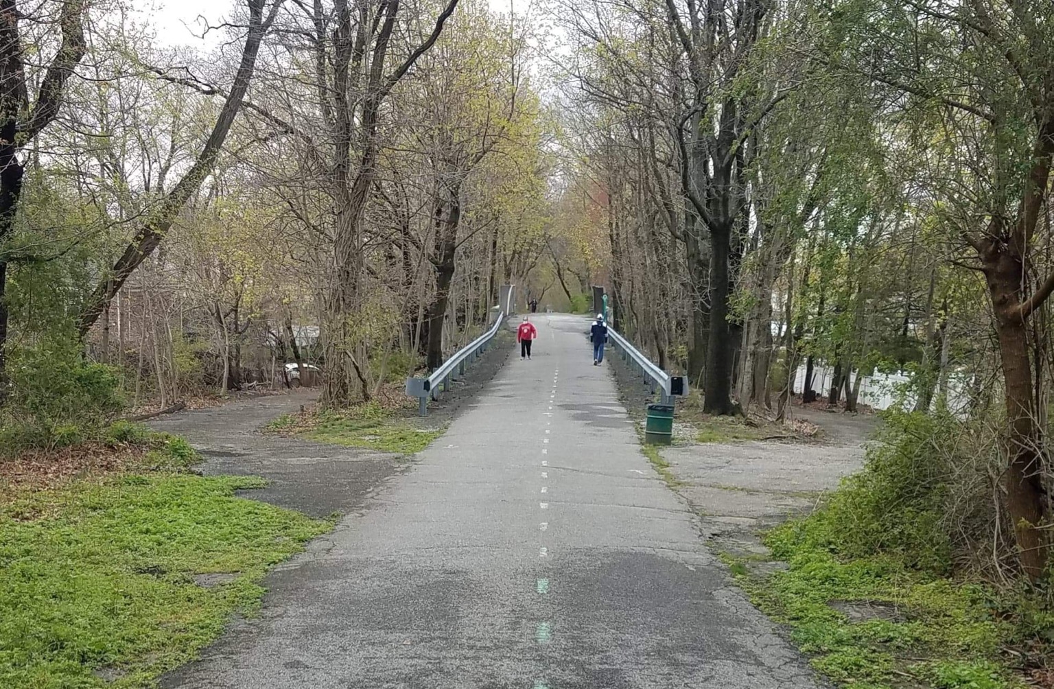 On the Motor Parkway bike path at the site of the Rocky Hill Lodge in Oakland Gardens, Queens.