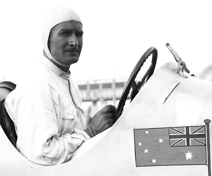 That’s Frederick Joseph McEvoy, also known as “Suicide Freddie”, in the #12 Maserati Special 6CM. McEvoy finished 6th in this car at the 1936 George Vanderbilt Cup Race on October 12, 1936 at the new Roosevelt Raceway track. McEvoy was born in Australia so the Australian flag was on the side of his racer. Interestingly, McEvoy won a bronze medal earlier that same year at the winter Olympics as the driver for the British 4-man bobsled team. See attached photo.