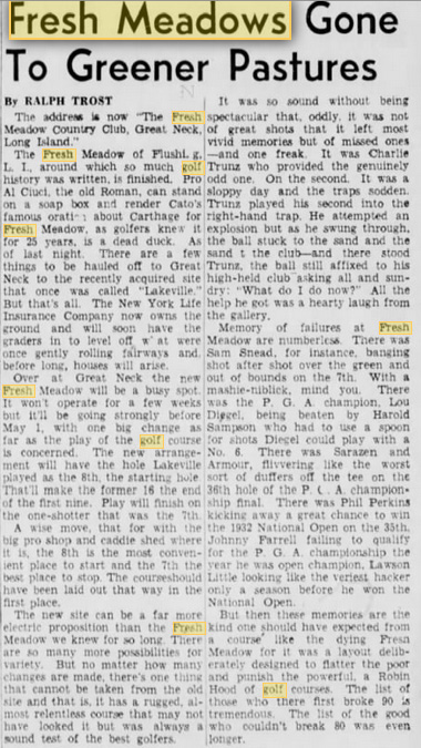 The golf course is Fresh Meadows or perhaps Kissena Golf club.
