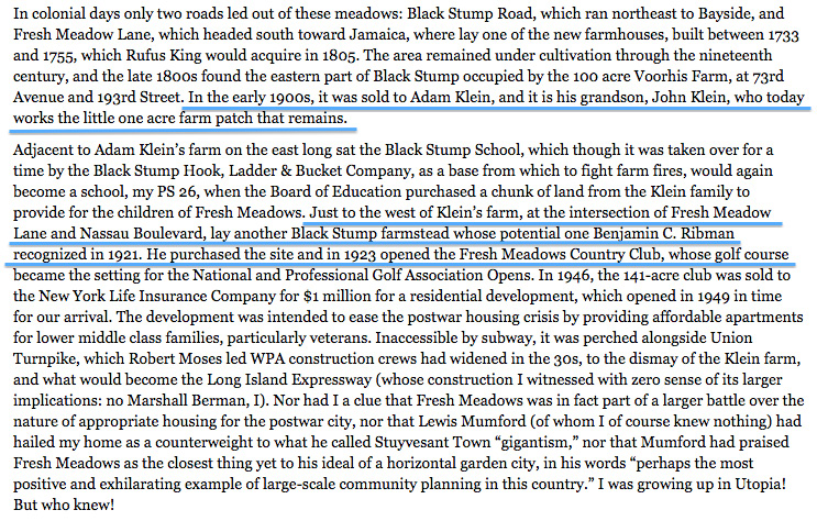 The major roads: Motor Parkway, Black Stump Row (73rd Ave.), North Hempstead Turnpike, Nassau Blvd. (Horace Harding Blvd.), Queens Rd. (Hollis Hills Terrace)