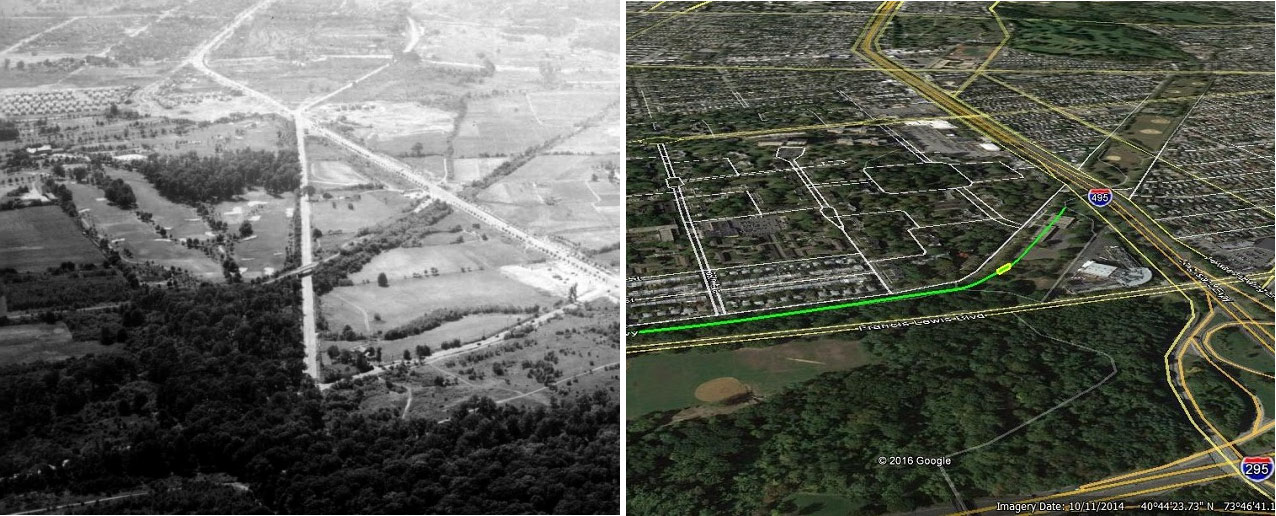 This photo is looking west over present day Cunningham Park in Fresh Meadows showing the western end of the LIMP. The major roads are: Horace Harding Blvd (Nassau Blvd.); Hollis Hills Terrace (Hollis Court Blvd); and the LIMP with its bridge over North Hempstead Tpke. The Fresh Meadows Golf Course is also visible. The date of the photo is June 2, 1939 and my rationale is that I cheated and found the photo by using the “search” feature above.