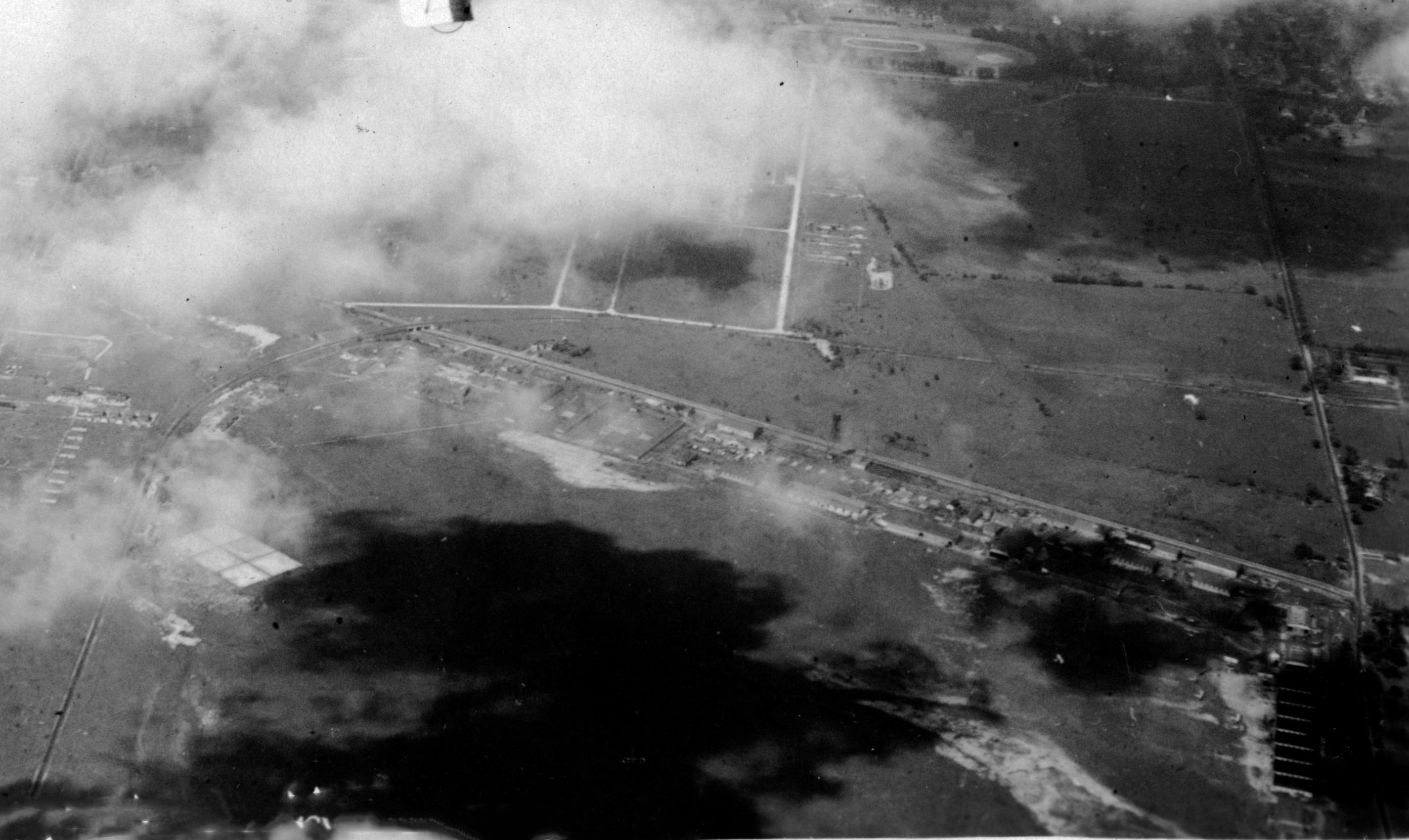 Over Roosevelt Airfield looking west (I can see Lindbergh’s hangar 16). Old Country Rd at extreme right, Clinton Rd running diagonal across the bottom of photo, From the left: Camp Mills Base Hopital’s East Main St/East New York St (Chestnut St)/East Commercial Av (Commercial Av)/CRR/Stewart Av. Cannot see LIMP structures but….. present in the photo is the Old Country Rd highway bridge underpass, Mayan Ruins proposed bridge, Clinton Rd parkway bridge, Superintendent’s house at 1 Vanderbilt Ct, and Garden City lodge - moved in 1989 to 7th St and now serves as the Garden City Chamber of Commerce, Camp Mills Base hospital roadways, west of Clinton Rd, also appear clear and still in use. The structures however appear removed; the clouds make viewing challenging. Photo’s date close to 1920(s) with Camp Mills Base hospital possibly removed.