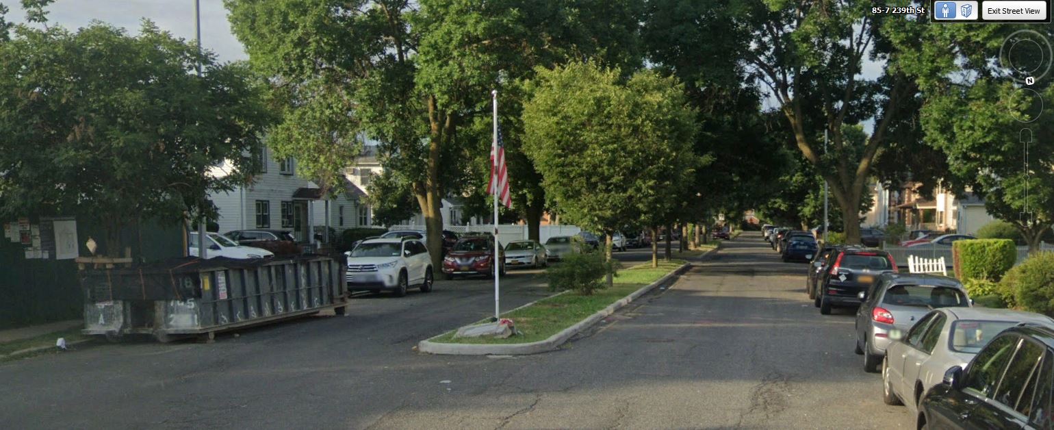 Looking north in the Bellerose section of Queens. Incident seems to have occurred on 87th Avenue between 239th street and 241st street. Hillside avenue is close by in the photo as well as buildings that are part of Creedmor hospital. There is a railroad track below that was the old Creedmor line (connecting to Floral Park and even earlier it connected to Flushing by which the Bell blvd bridge was used for LIMP).