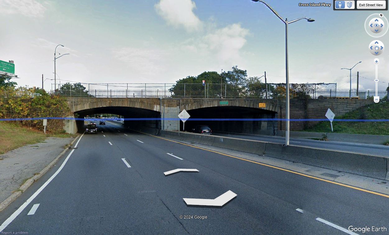 Double opening overpass is the new Union Tpke bridge going over the Cross Island Pkwy. The LIMP Commonweath Bridge just above it.