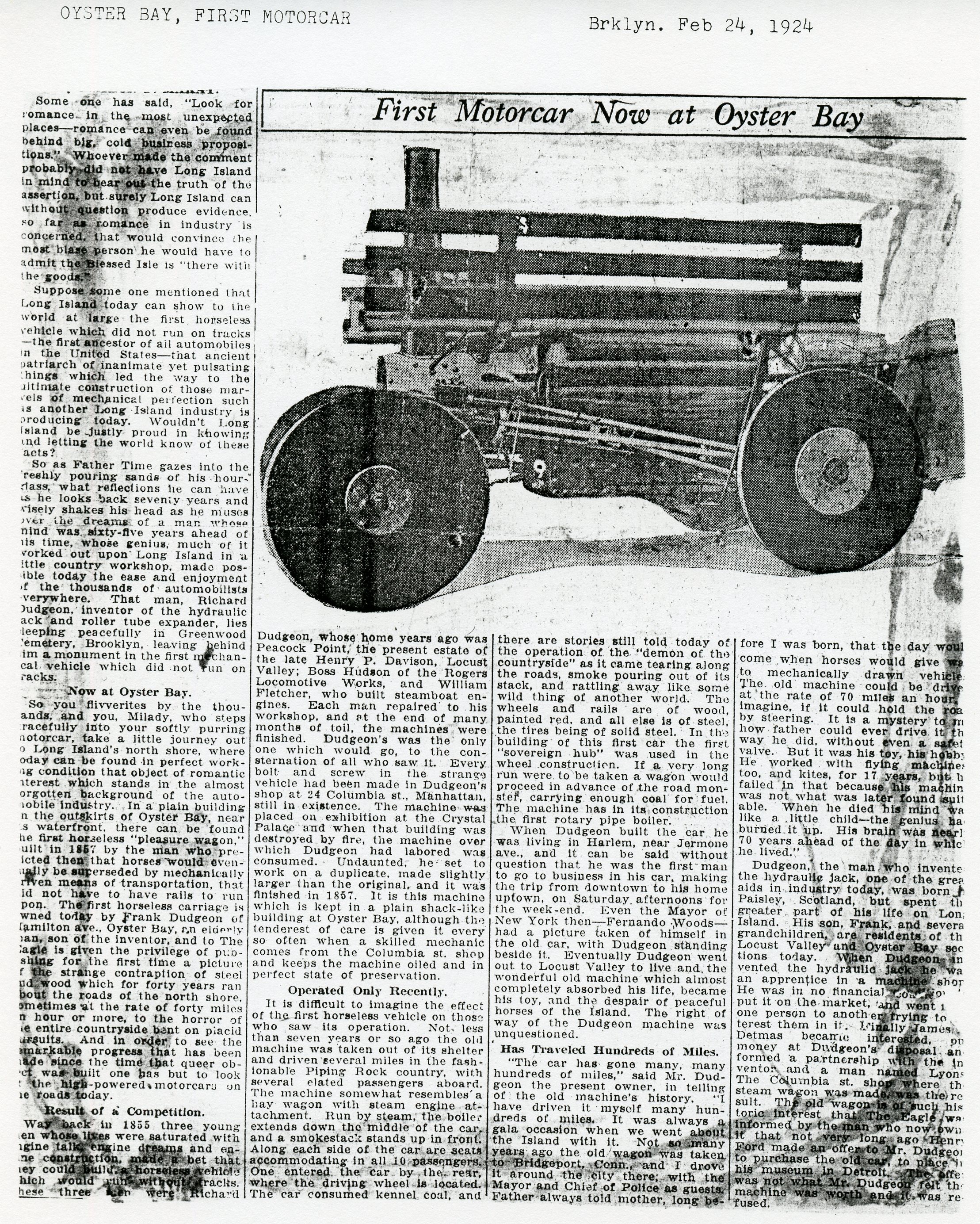 "First Motorcar Now at Oyster Bay", Febrauary 24, 1924. Courtesy of Gary Hammond.