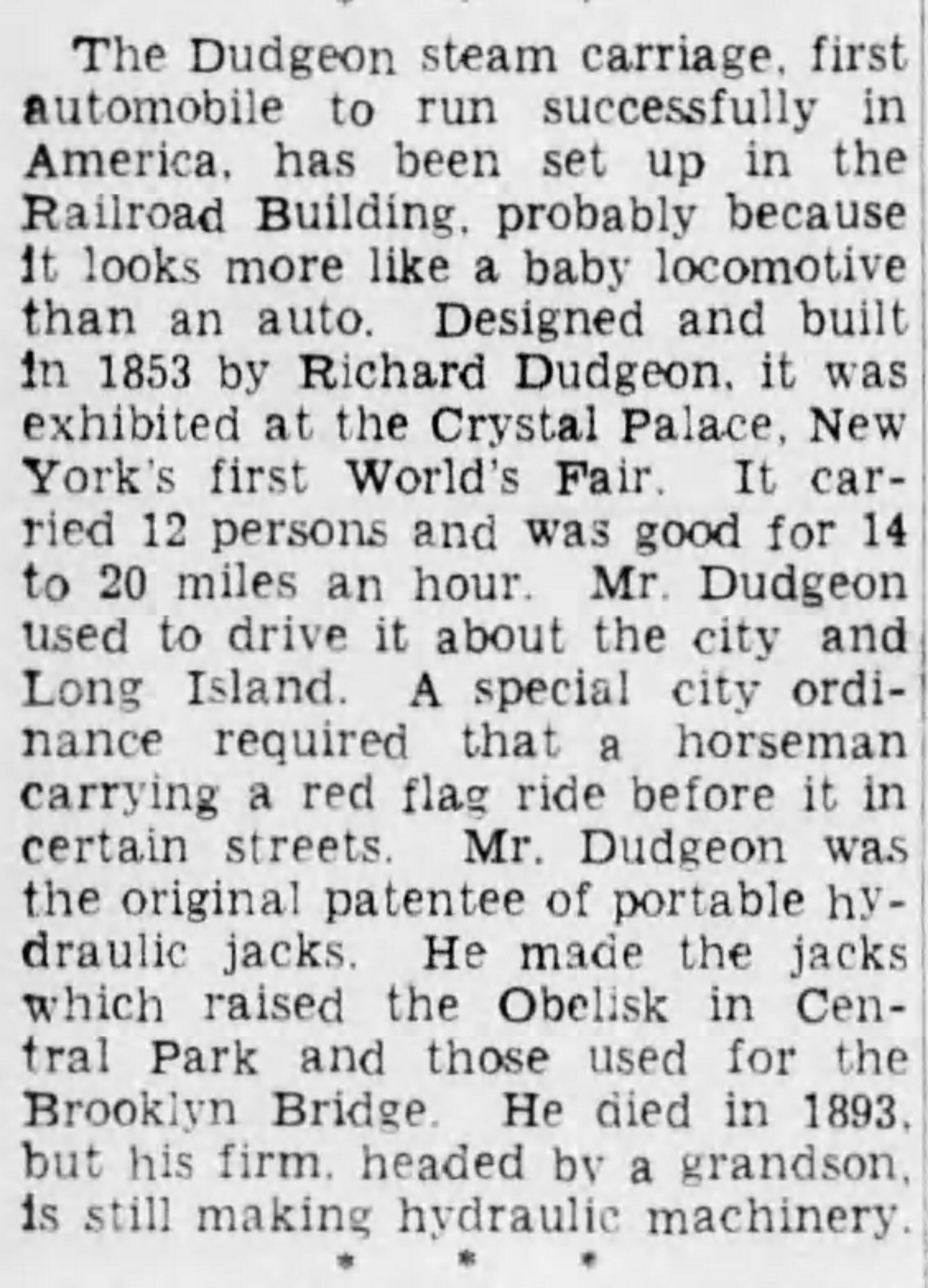 Came across this article pertaining to the Dudgeon in “The Autobain” of Dec. 1, 1900. Much more written about the car and its connection to LI on Sam Berliner’s website (http://sbiii.com/dudgeon.html).