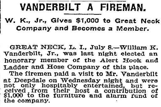 William K. Vanderbilt Jr., who was a benefactor and member of the Vigilant Fire Department of Great Neck.