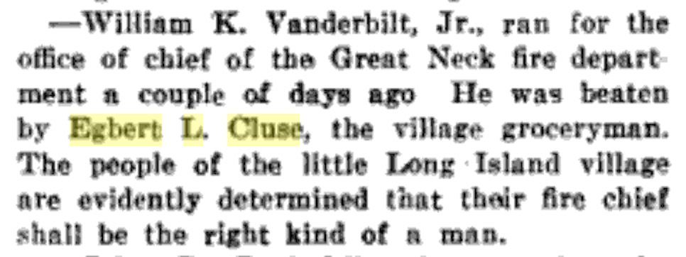 That sure looks like Willie K. Jr. I think he’s standing in front of his Deepdale estate in Lake Success. The uniform looks like it’s from an auxiliary volunteer fire department; possibly from the Village of Lake Success. Or since he had the recent memory of his father’s estate in Oakdale burning down, he organized a V. F. D. unit on his own property. He looks quite young so I’m going with a date of around 1905.
