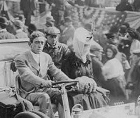 Don’t know this one, but I believe that to be Dan Rather driving the automobile, obviously before his war correspondence days…or maybe Jim Florida?...a more serious guess might be zooming in tight on the stands there maybe appears to be Alva Vanderbilt Belmont in the distance