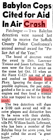 Mystery Friday Foto #49 Solved:The 1958 Airplane/Three Car Crash on the Southern State Parkway
