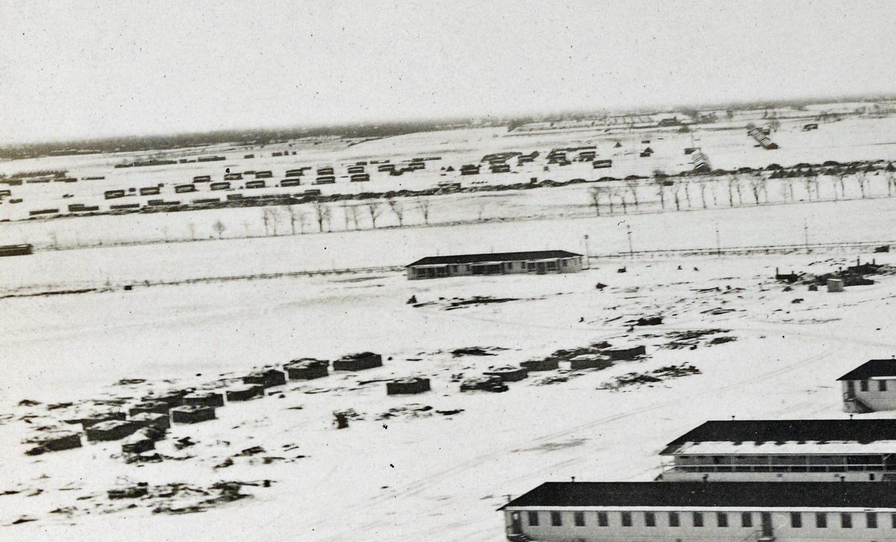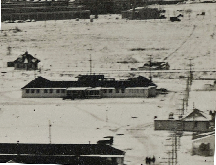 January 1918. Rationale: The Hazelhurst barracks, the General Manager's first office building and snow on the ground