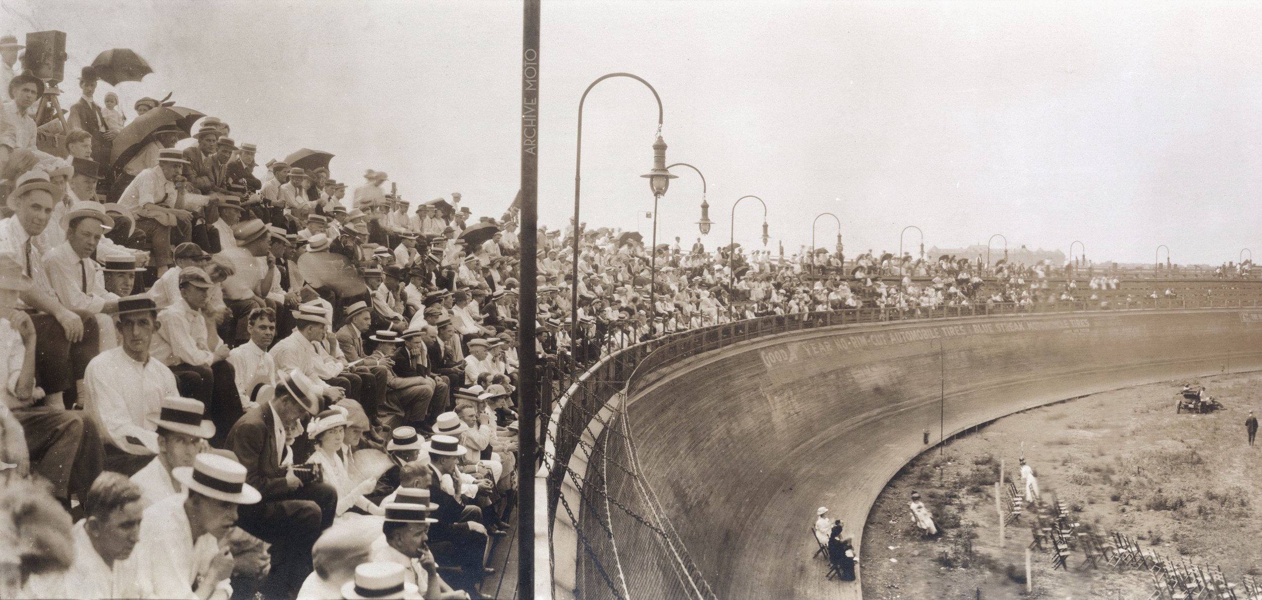 Motordrome board tracks were usually circular and not oval like the Coney Island Velodrome and were the 'latest in racing' from approximately 1910 through the 1920's.
