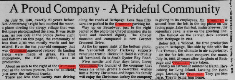 Grumman Airport in Bethpage.