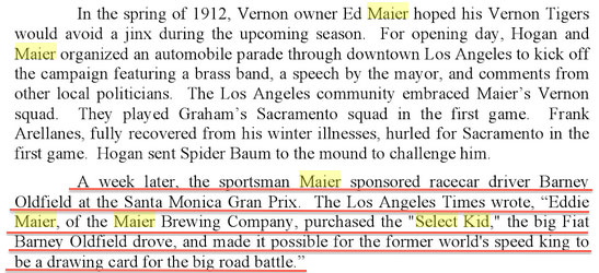 A beer brewed at the Maier Brewery. The Maier Select Kid was the nickname for the race car.