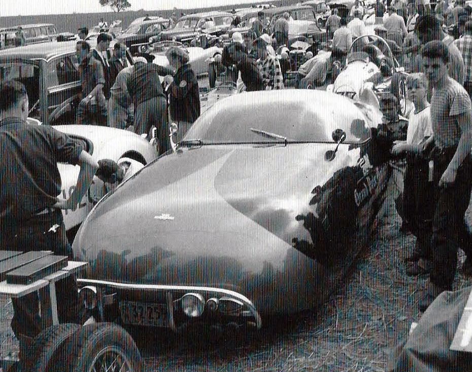 "The Beast", originally built for Russ Case, was used as a tow-car for Chuck Kotchan for his #77 Effyh racer which can be seen directly behind it. This photo was taken at the 1951 Bridgehampton Sports Car Races on June 9, 1951.