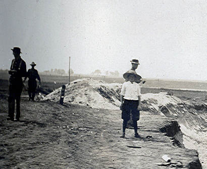 I think this photo shows excavation work being done for the LIMP roadway to pass under the yet to be built Stewart Avenue bridge in East Meadow / Salisbury. It looks like the photographer was looking generally west. After construction was completed, this section of the LIMP was part of the course for the 1908, 1909, and 1910 Vanderbilt Cup Races.