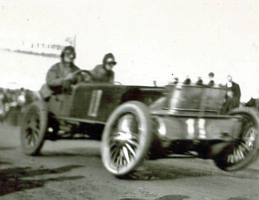 Given the absences of googles and a driving mask for both the driver and mechanician, this was a practice run prior to the 1906 American Elimination Trial.