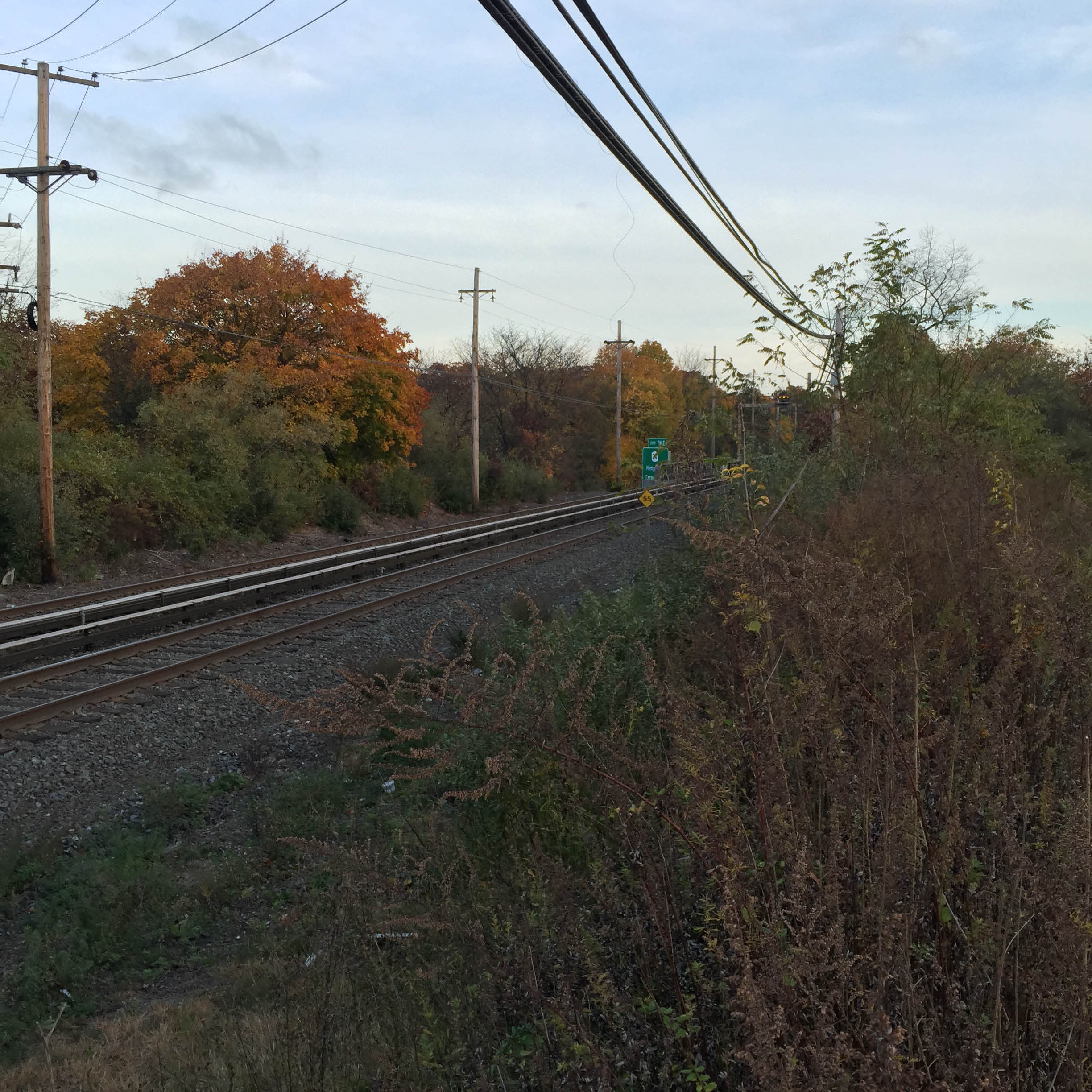 • In the distance adjacent to the tracks, you can see a small railroad building on the right, which is still visible from Bethpage Parkway (my normal commute route)