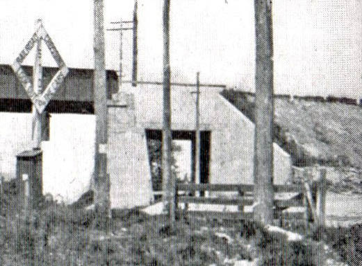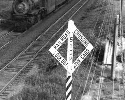 Central Avenue/LIRR Railroad Bridge in Bethpage. Train was heading west with the photograher looking east. Note the crossing sign and gatekeeper's outhouse on the lower right.