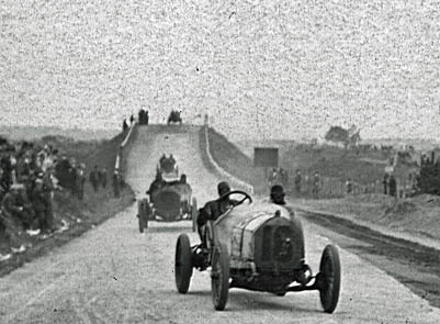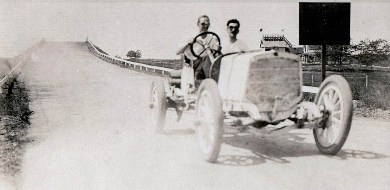 Ralph Mulford testing his Lozier after going over the Wantagh Avenue Bridge.