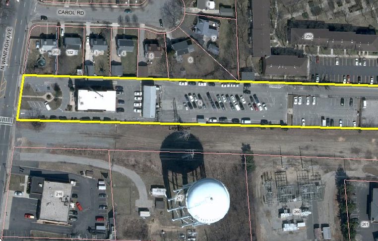 NCPD 8th Precinct, also nearby to the south is the Levittown FD #3 station house (built in 1960) and the Island Trees Water Tower.