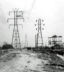 I’m not of age to have an actual memory of this scene, but I know the area. This is Levittown, looking east across Wantagh Ave. The remains of the LIMP/East Abutment is seen at the left.The PSEG Row is to the right, Levittown substation near distance. The steel towerline to the right is now steel poles. Pre-1960, 8th precint (community policing center) was built at LIMP location in photo (1960).