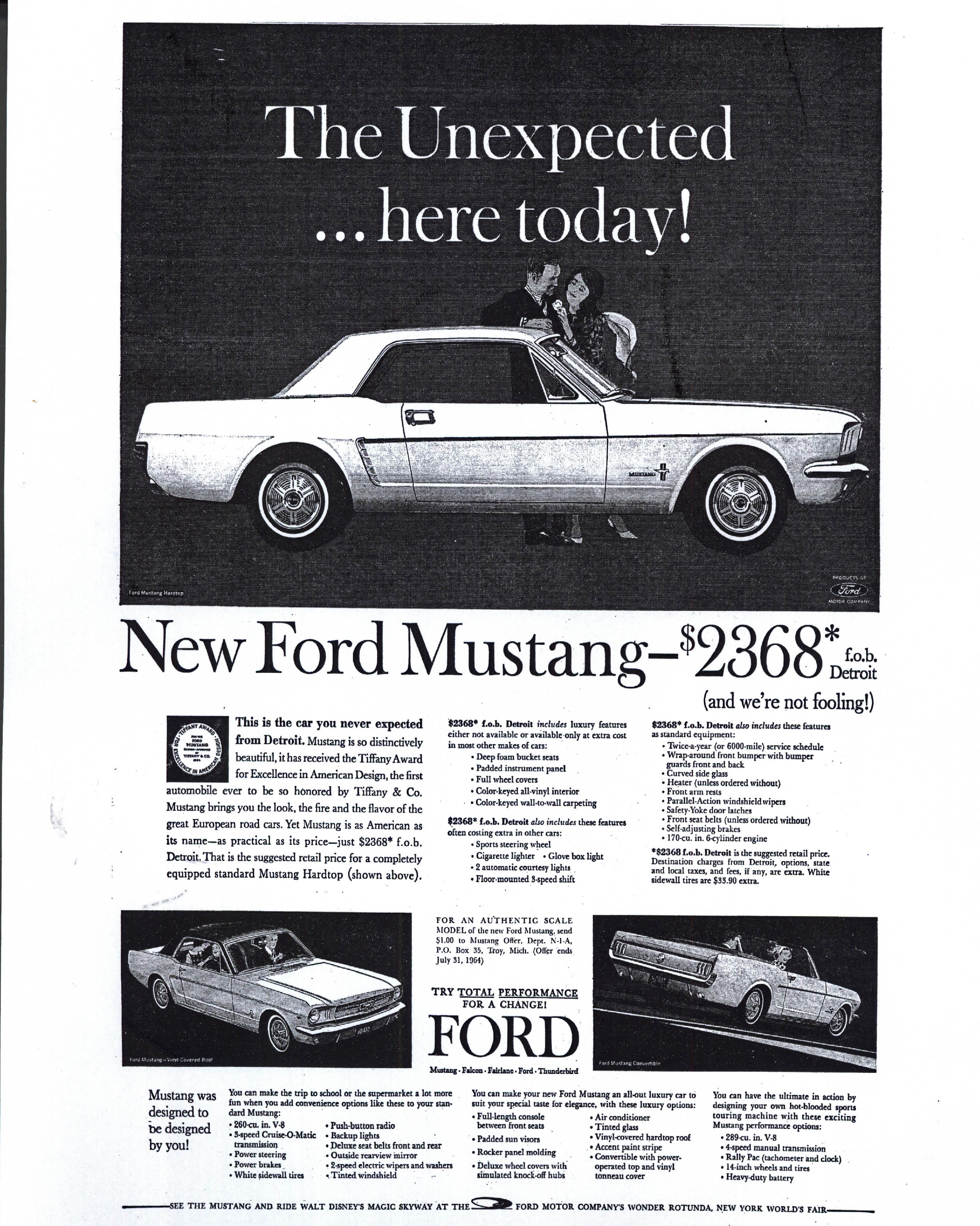 I’m guessing it was at the factory’s showroom, perhaps in or near Detroit. I drove one of the first Mustangs, with a 3 on the floor, and plaid convertible top with the six engine.