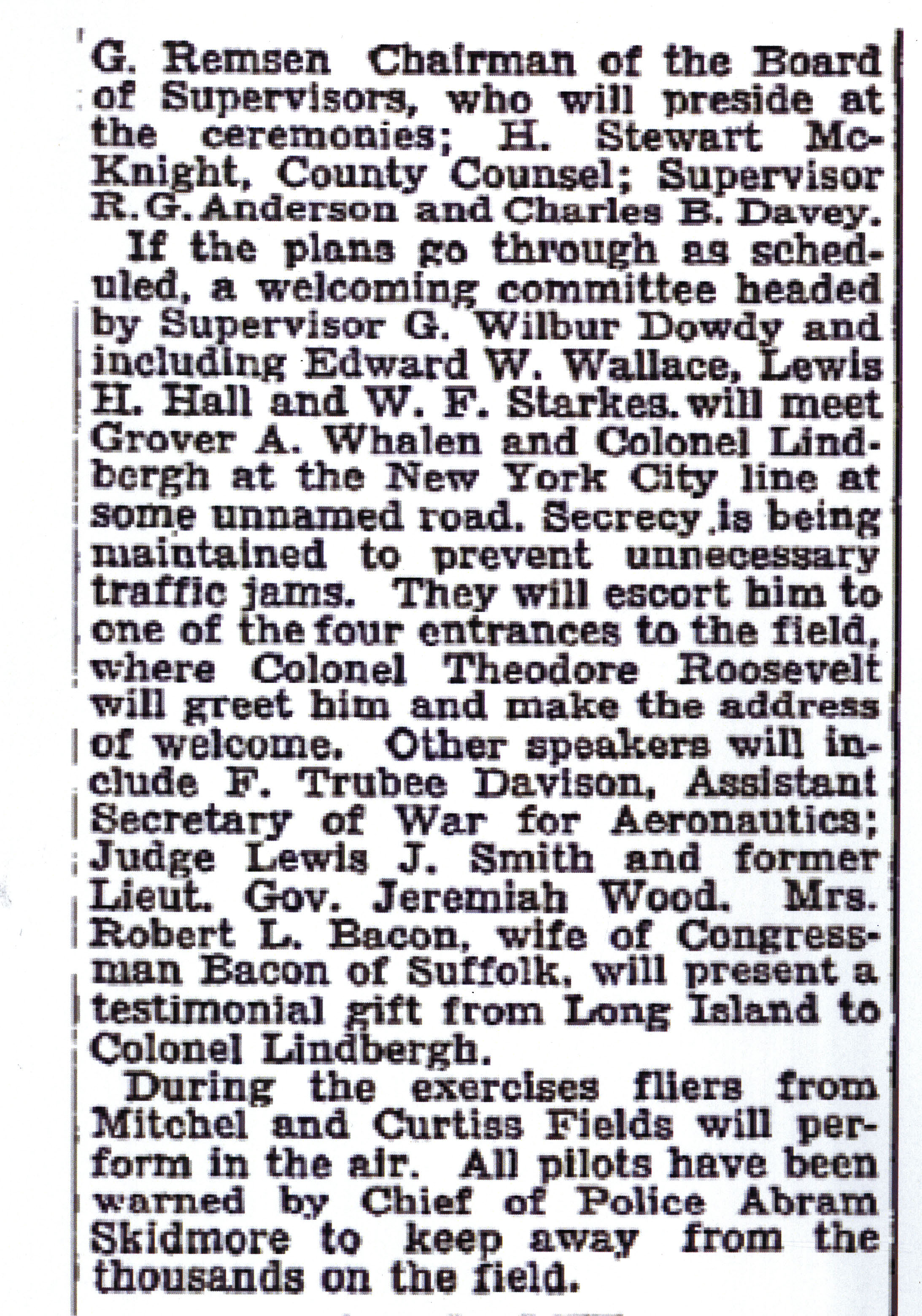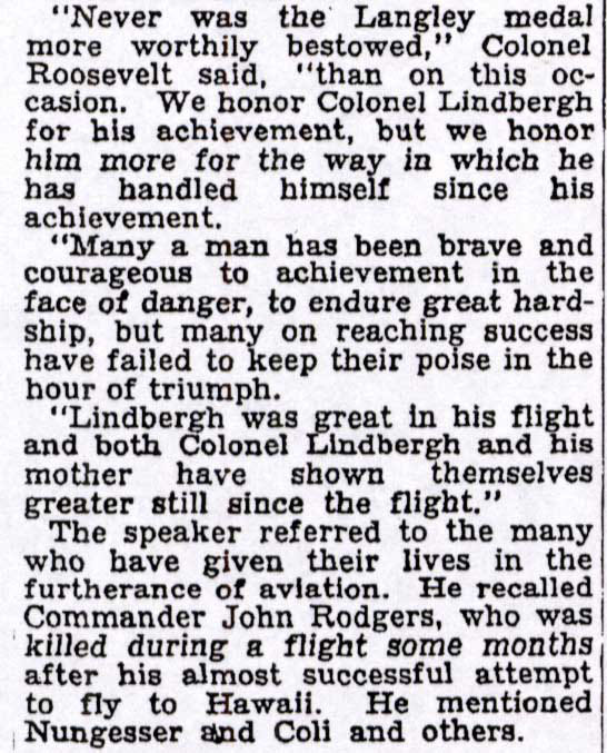 The gentleman to left of Lindbergh was Colonel Theodore Roosevelt, Jr., the son of President Theodore Roosevelt.