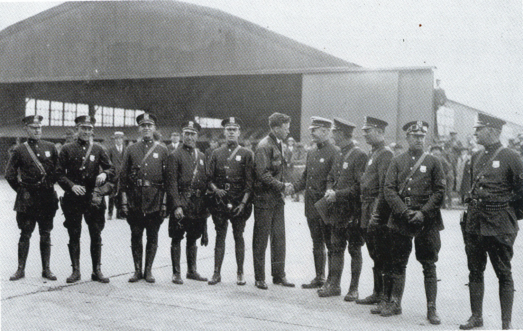 I believe the hangar in the background was located at Mitchel Field. The police escorted Lindbergh to nearby Roosevelt Field for the 3:30 pm ceremony.