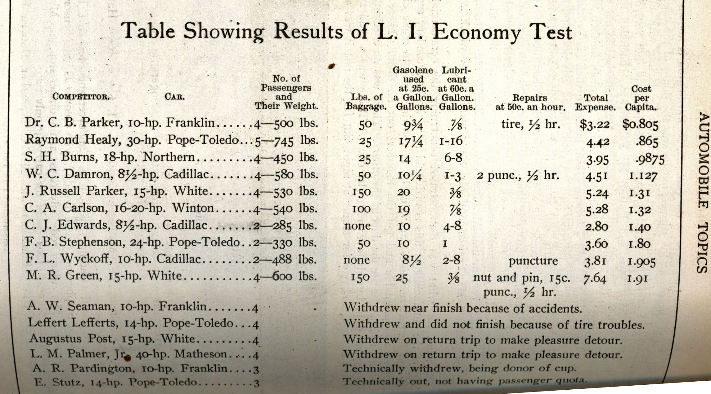 Long Island Automobile Club Economy Run, June 10-11, 1905