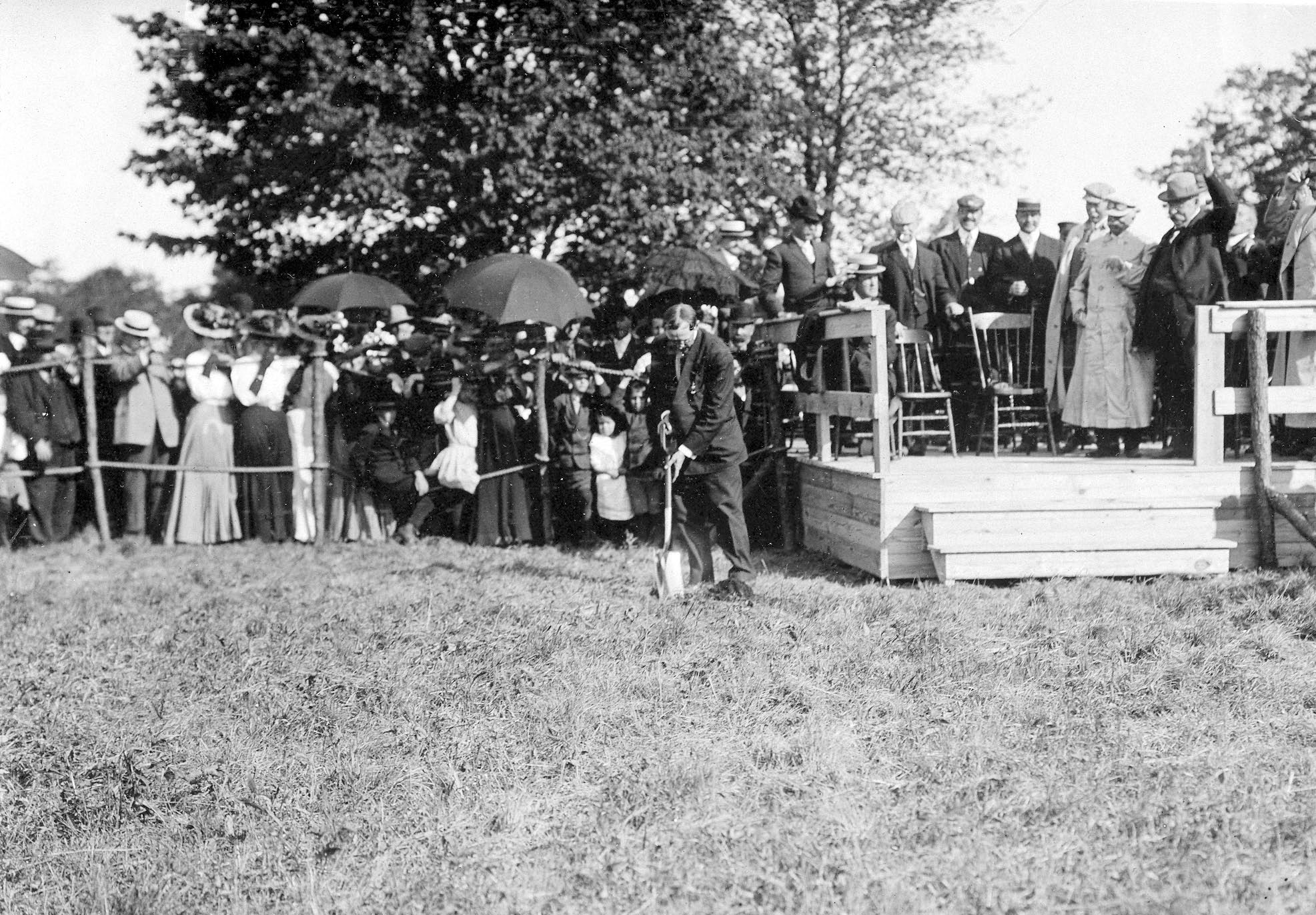 A. R. Pardington at the 1908 ground-breaking ceremony of the Motor Parkway.