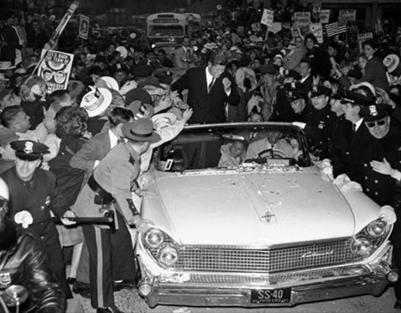 I still remember the day John F. Kennedy road in his motorcade on Hempstead Turnpike in East Meadow while campaigning for president on a rainy Saturday in November 1960. I was 11 years old and will never forget the lone figure standing and waving in an open limo, just four days before he was elected president. As shown in this photo from the Denver Post, the next day he drove to the Commack Arena for a speech in a convertible Lincoln Continental.