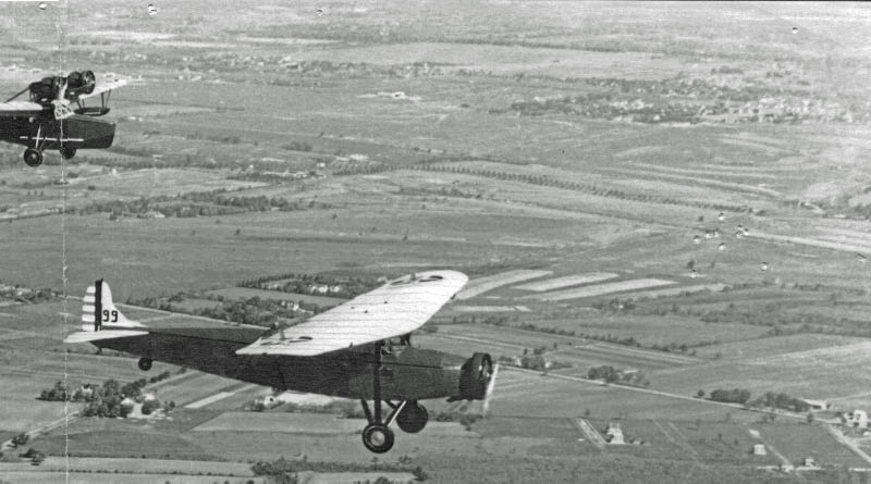 Fokker Y1C-14 (right) and a Douglas C-29 "Dolphin" (left). Both planes were likely flown by the United States Army Air Corps