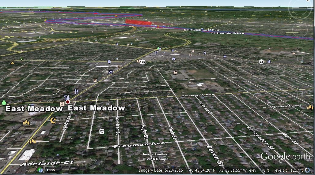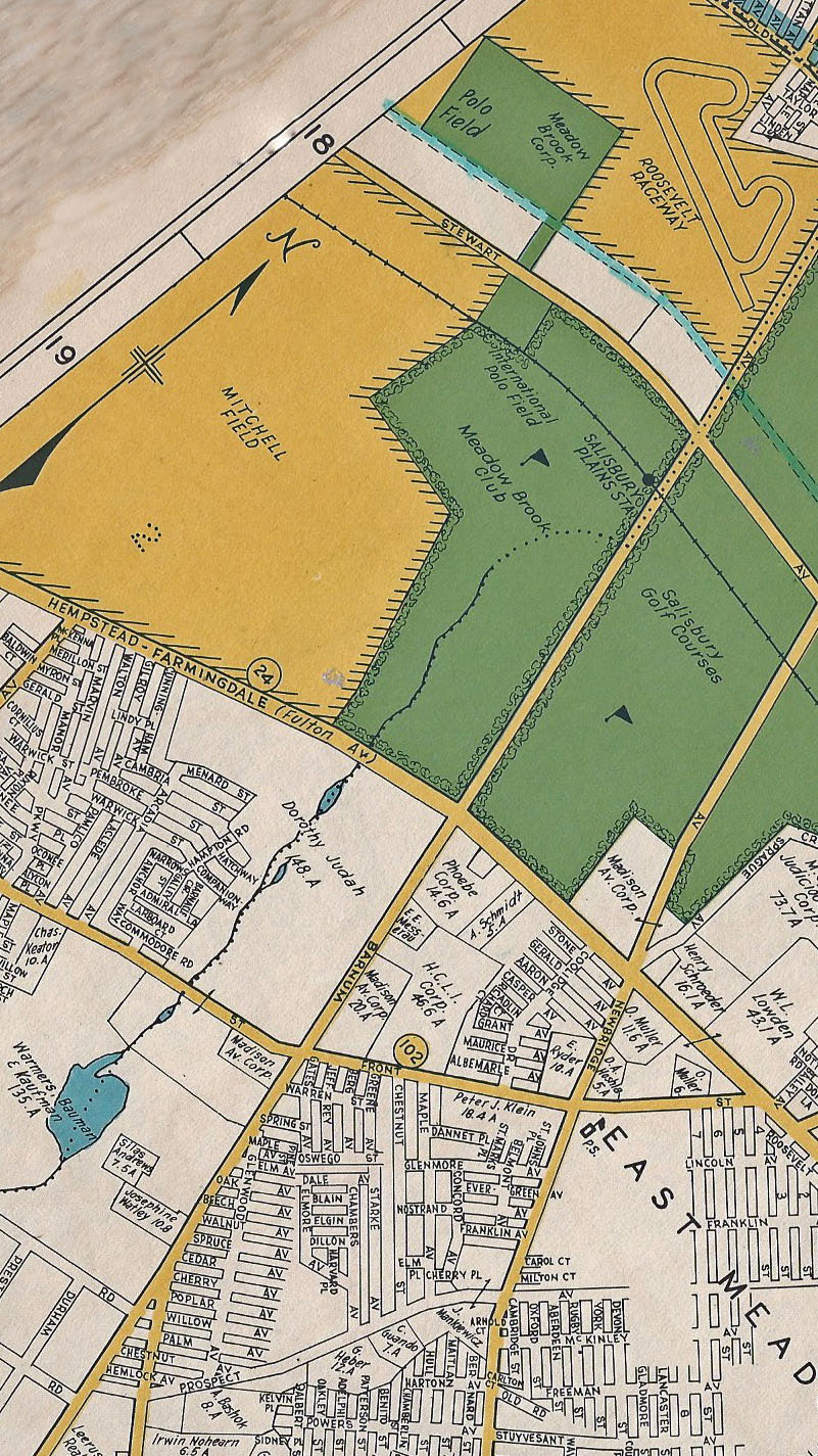 The usual suspects in view here… Meadow Brook Golf Club, Salisbury Golf Club, Coldstream Golf Club, Meadowbrook Polo Club, Mitchel Field, Roosevelt Field, Hempstead Tpke, East Meadow Ave, Merrick Rd,