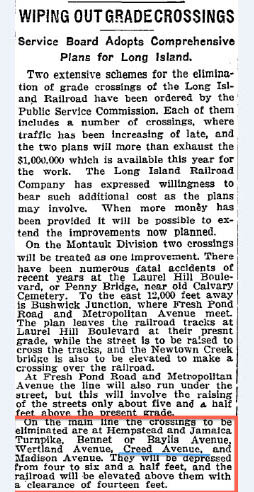 New York Times September 1, 1911: Elimination of the grade crossing.