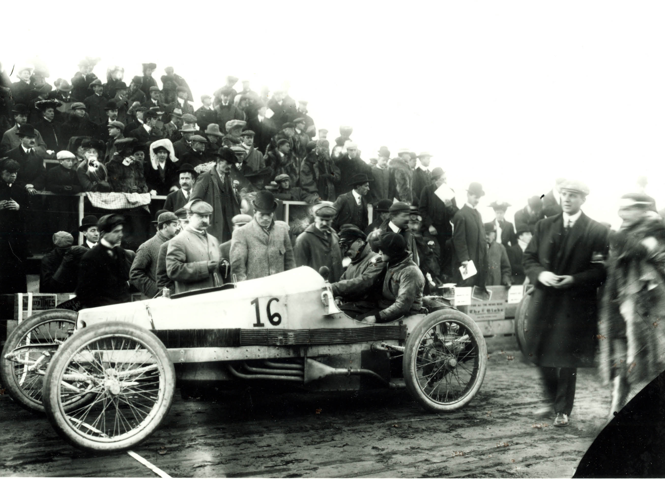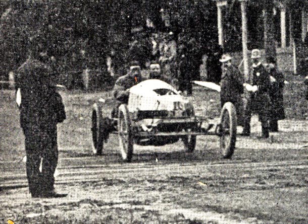 • 1904; however, this may be a pre-race practice run since the driver and mechanician are not wearing the helmets and goggles visible in other race photos)