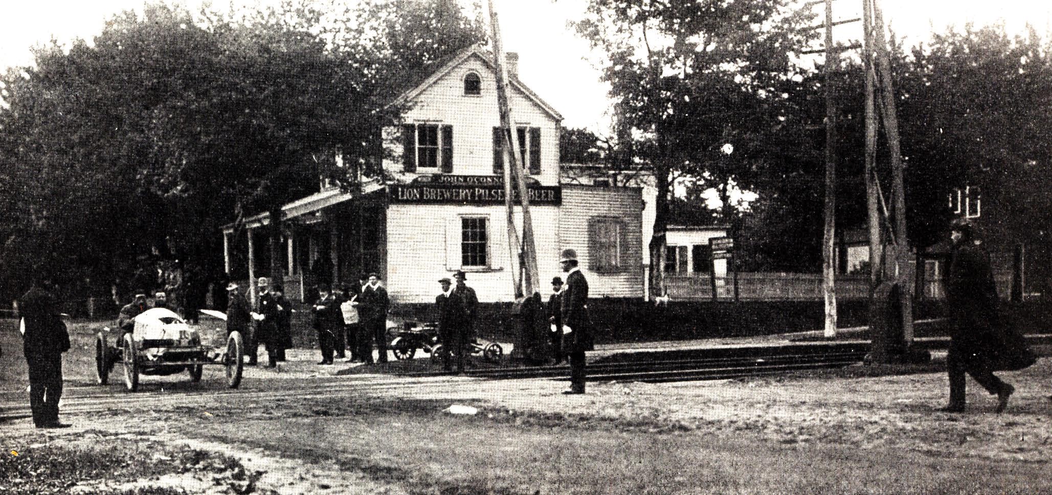 Queens Village (known simply as Queens at the time). Springfield Ave. (aka Creed Ave.) Railroad Crossing. O’Conner’s Tavern located near Creed Ave. and Jericho Rd. (aka Jamaica Ave.) Unique might have been the course took the racers over a ground level railroad crossing. Hence the need for police officers near the crossing.