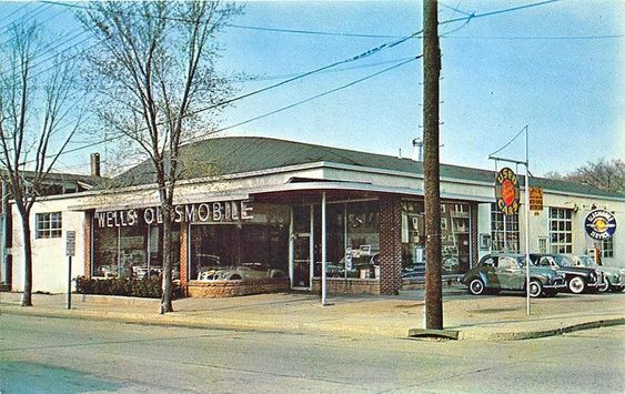 Wells Oldsmobile showroom and garage, Port Jefferson, Ardencraig Inn location-1960s