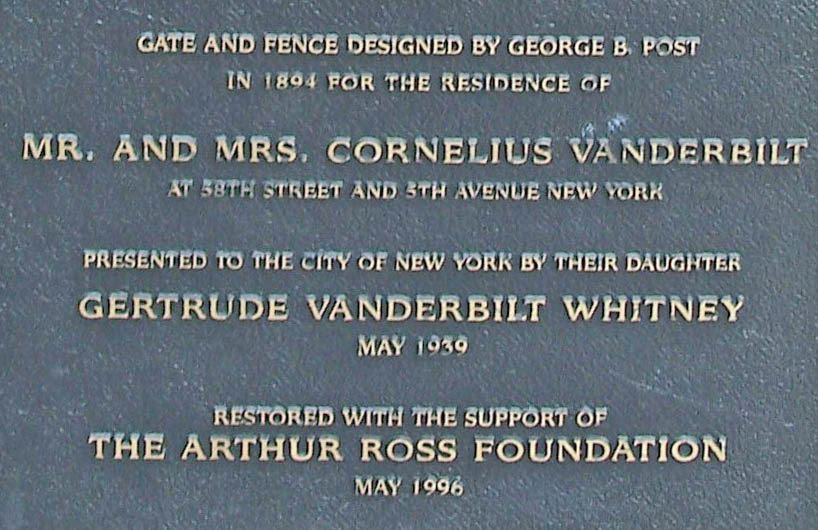 The Vanderbilt Gate, East 105th Street and Fifth Avenue