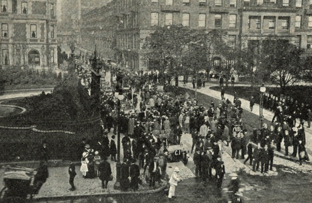 The start of the run at 9:00am on October 9, 1902. The view was looking west down 58th Street from Fifth Avenue. The ACA headquarters was located on 58th Street.