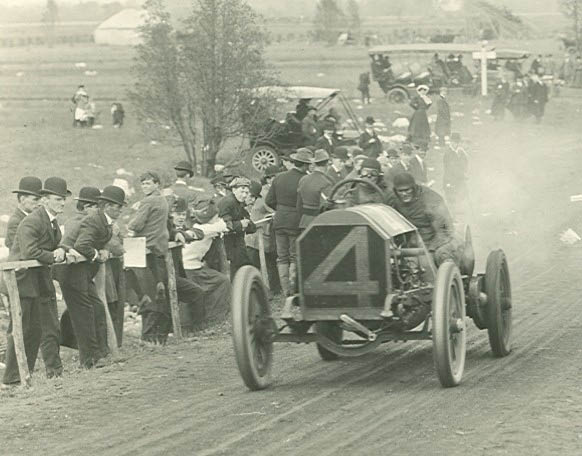 The DPL digital collection is like a treasure hunt. This beautiful picture shows Willie Haupt and his mechanician Lindquist on their 6 cylinder Chadwick passing Ellison Railroad Bridge during the Vanderbilt Cup race of 1908. Although they completed the race, they finished 10th and last.