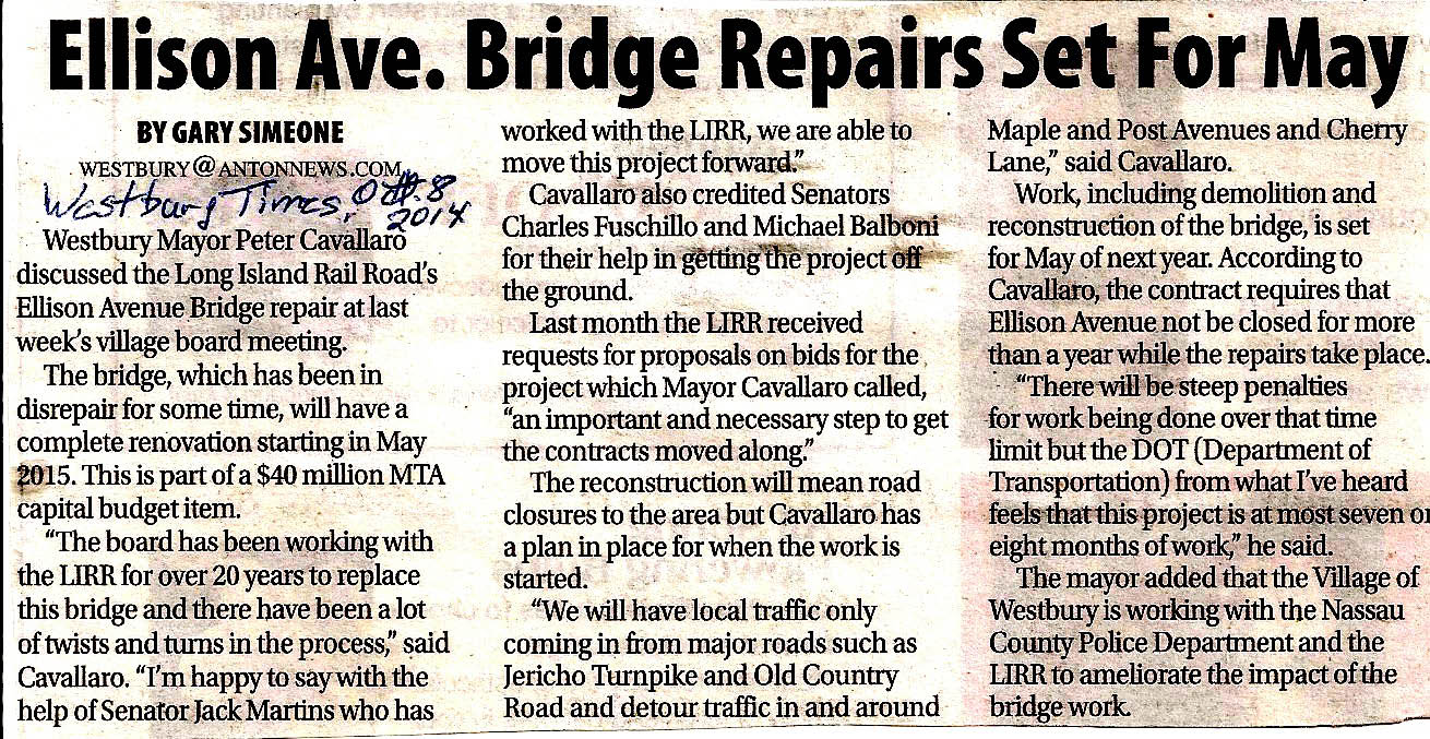 3. Identify the location in the Mystery Foto: The bridge over the LIRR tracks at Ellison Avenue in Westbury.