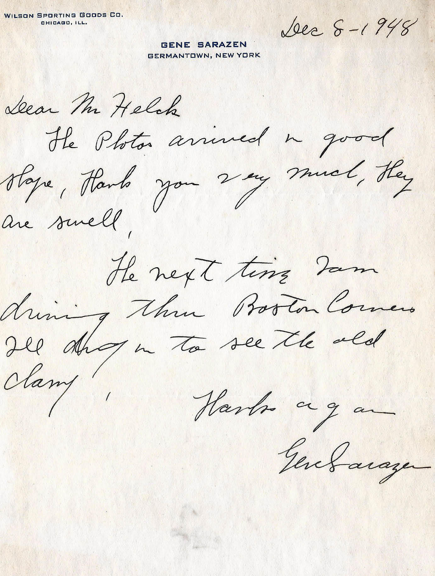 A letter to Peter Helck from Gene Sarazen
