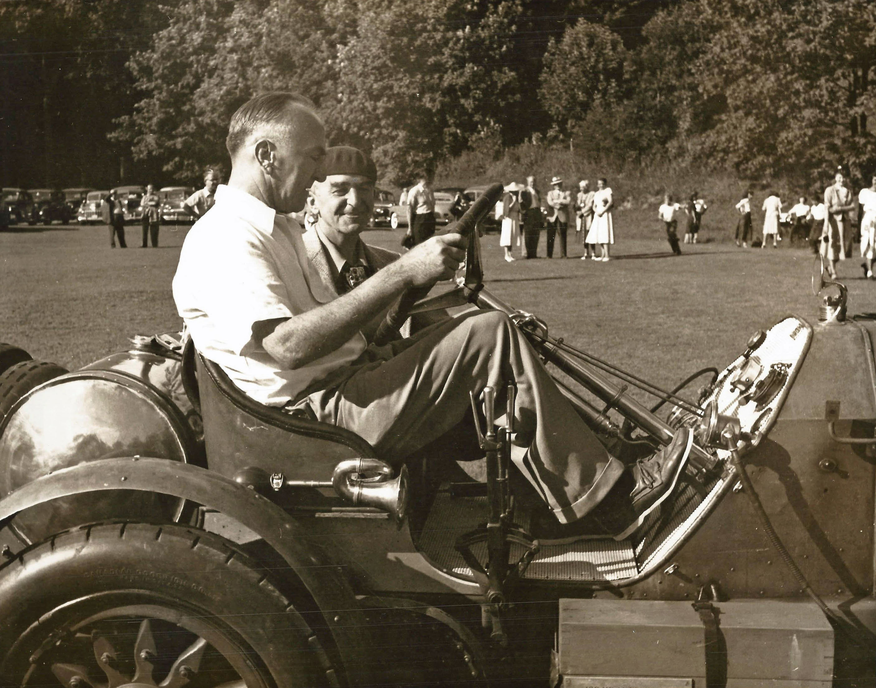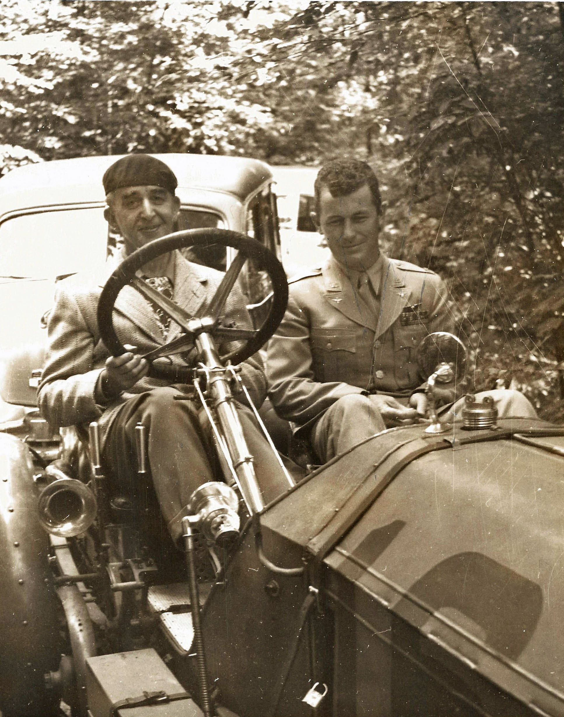 A. Vanderbilt Cup Race driver, World War I "Ace of Aces" and aviation executive Eddie Rickenbacker (left) and Peter Helck (right)
