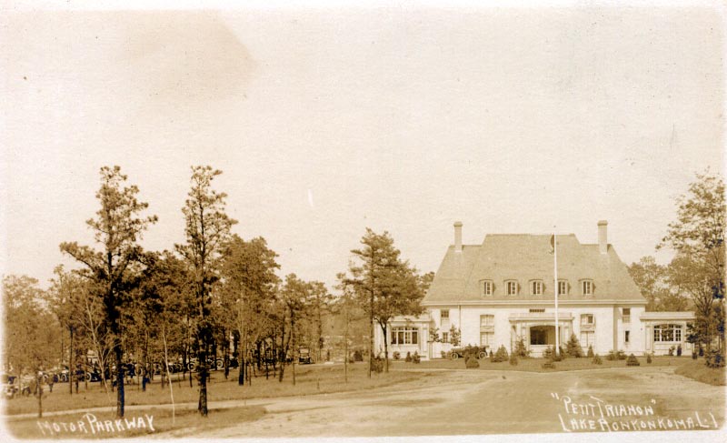 Our house still stands there, number 28 Lake Drive, it is on the last block of Motor Parkway about two hundred feet from where the Petit Trianon stood. There were only three homes on the north side of Lake Drive, an elderly German couple named Tessert, our home at number 28 and a home owned by the Italian Gluliamo family who later changed their name to Williams, the corner property belonged to the Scalzo family located on Washington Avenue facing North Drive. The family was into real estate and is still in real estate located in Brooklyn on Thirteenth Avenue. All these homes and the ones built in later years along side the Motor Parkway had natural gas heat and cooking, not bottle gas, thanks to the gas line installed to feed the Petit Trianon back in 1910.