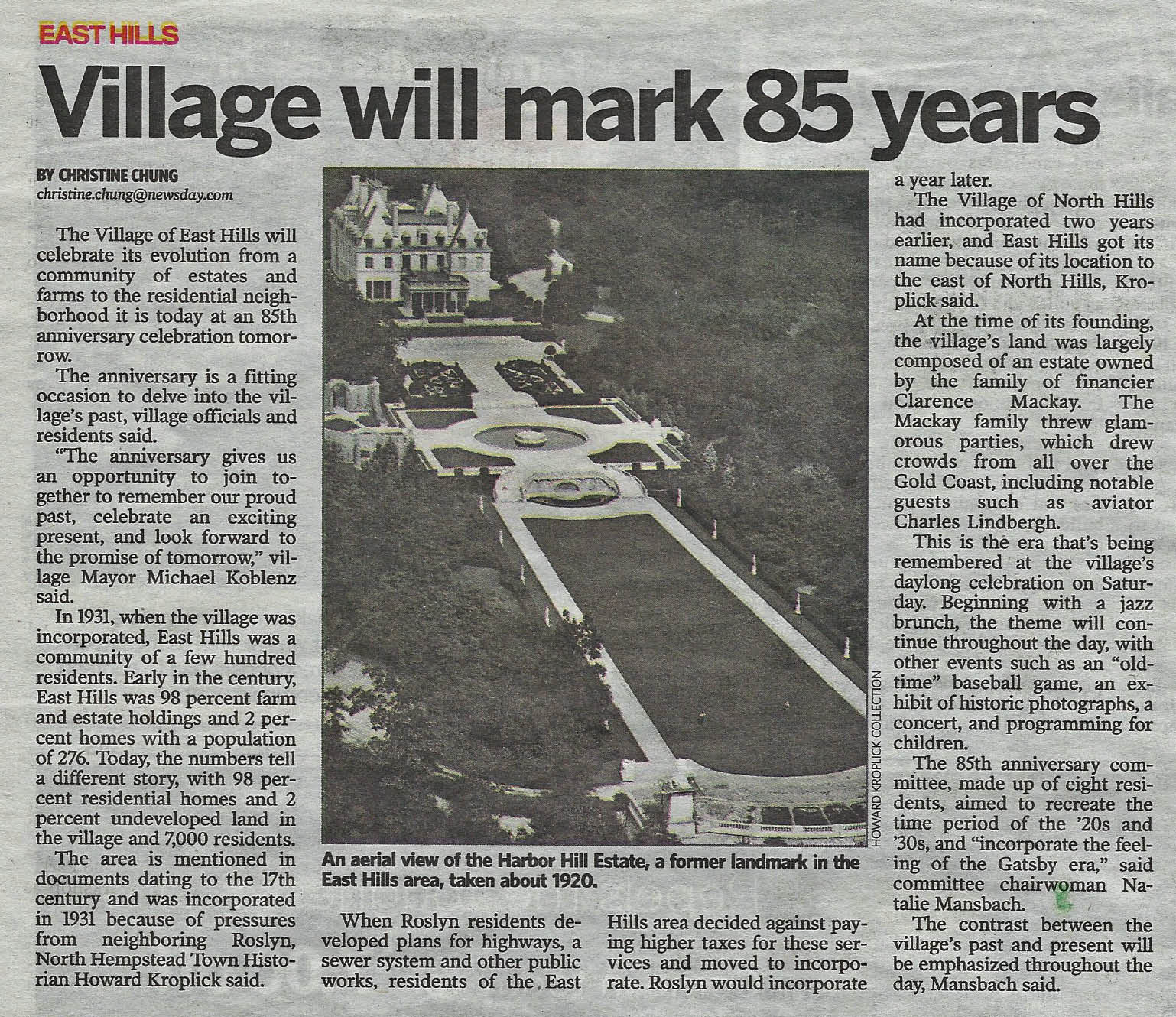 Newsday: East Hills to celebrate 85th anniversary with day-long party