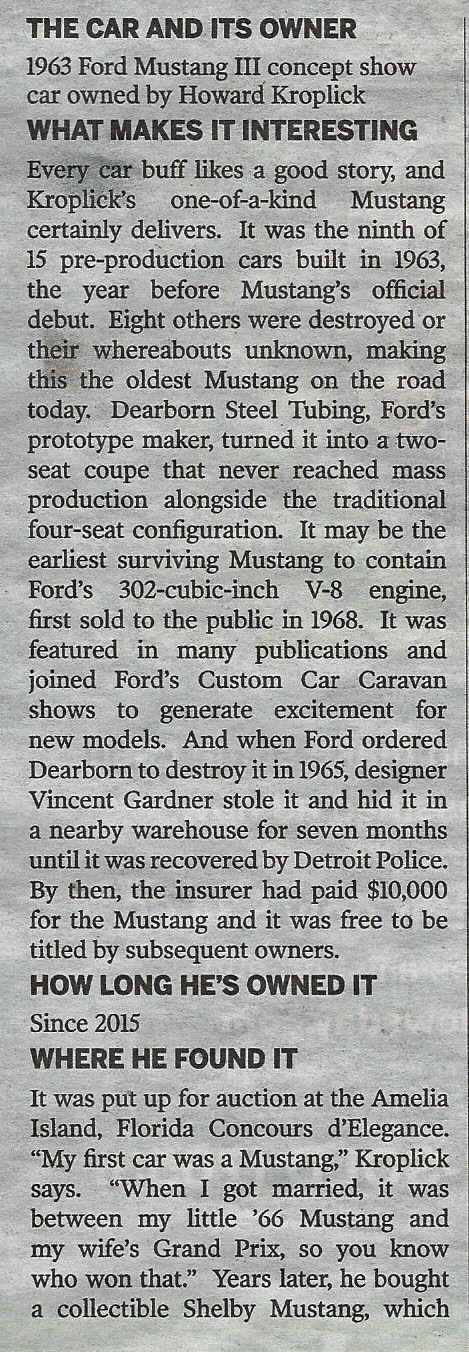 David Fluhrer profiled the Mustang III in today's Newsday In The Garage column.